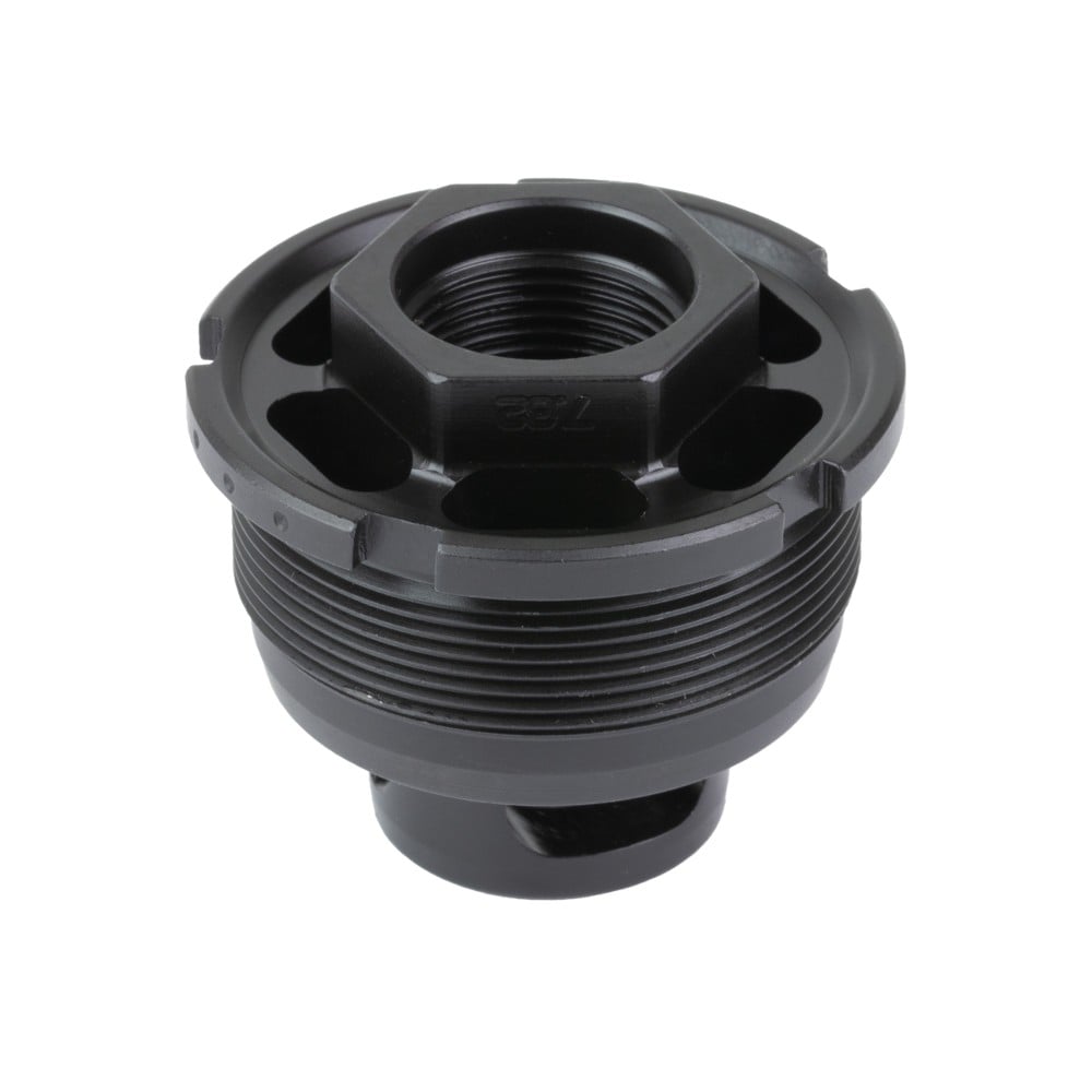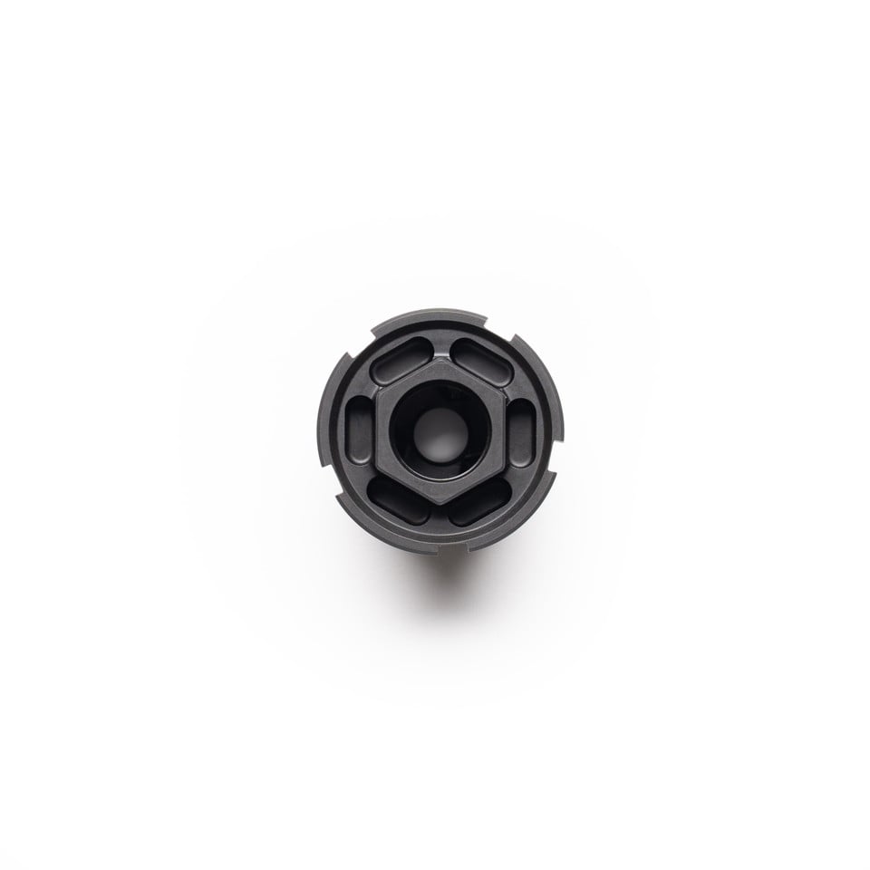 The Dead Air Direct Thread Brake (DTB) Mount delivers all the shooting performance advantages of an external muzzle brake—significantly reducing felt recoil for faster follow-up shots—while also enhancing suppressor efficiency. By optimizing gas flow into the blast chambers, it minimizes focused erosion on the baffles, extending suppressor lifespan and maximizing sound suppression. The DTB excels both as a high-performance muzzle brake and as a precision-engineered direct thread adapter.