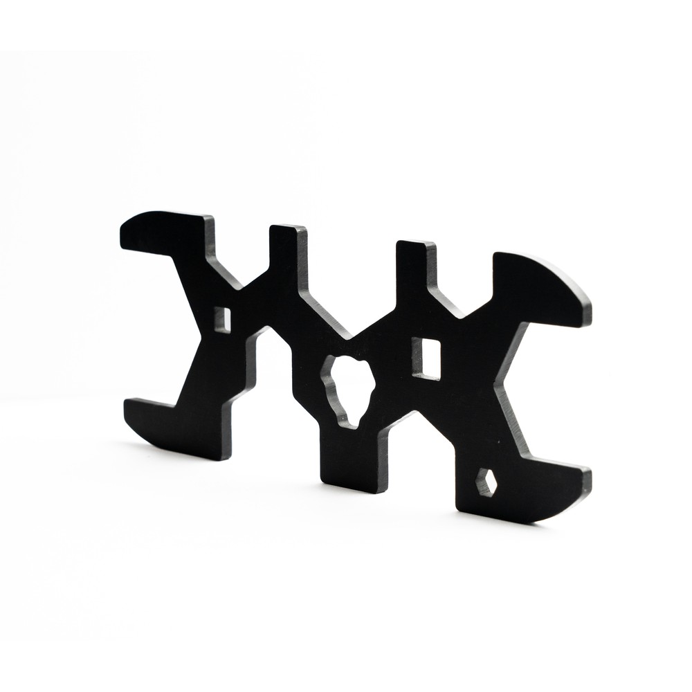 The HUXWRX Combo Wrench is a specialized tool for installing, removing, and servicing their suppressors and associated muzzle devices. It is designed to work with various HUXWRX products, including their Quick Disconnect (QD) and 3-Lug muzzle devices, and different sizes of their suppressors. This multi-functional tool helps ensure proper torque and allows for easier maintenance and assembly of the suppressor system.