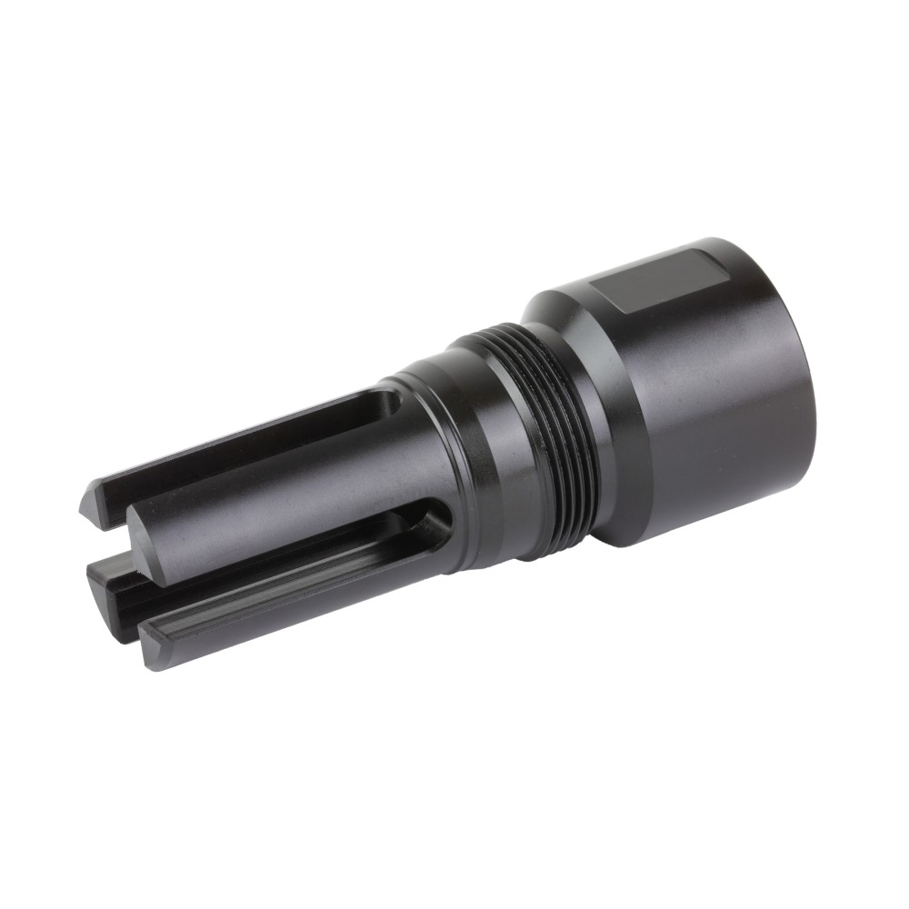 The Rearden Cyka Flash Hider (Nitride) attaches to our Atlas adapters, making them compatible with most suppressors on the market. The Cyka uses a 25mm wrench.  The Atlas has 1 1/4”wrench flats on the rear; we recommend using a crows foot wrench. The Cyka muzzle devices are designed to facemount on 24 and 26mm threads, helping to solve many common AK alignment issues.