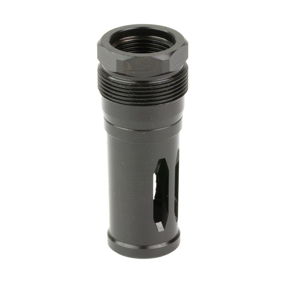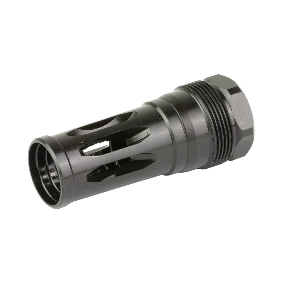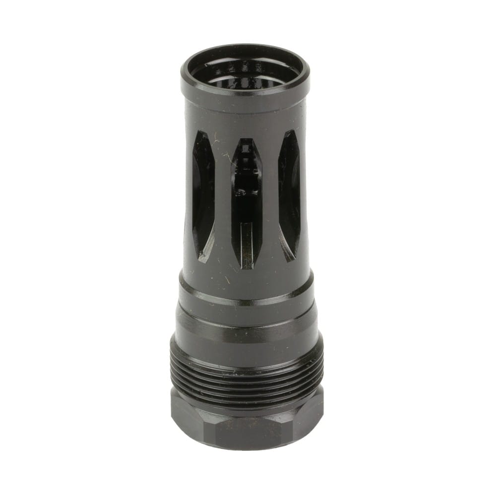 The Rearden R2C flash hider in nitride finish designed for use with the Plan B or Rearden Atlas suppressor mounting systems. It is a closed-tine, closed-bottom design with top ports to help mitigate flash signature, and the closed bottom helps to reduce dust signature when shooting prone or in dusty environments.