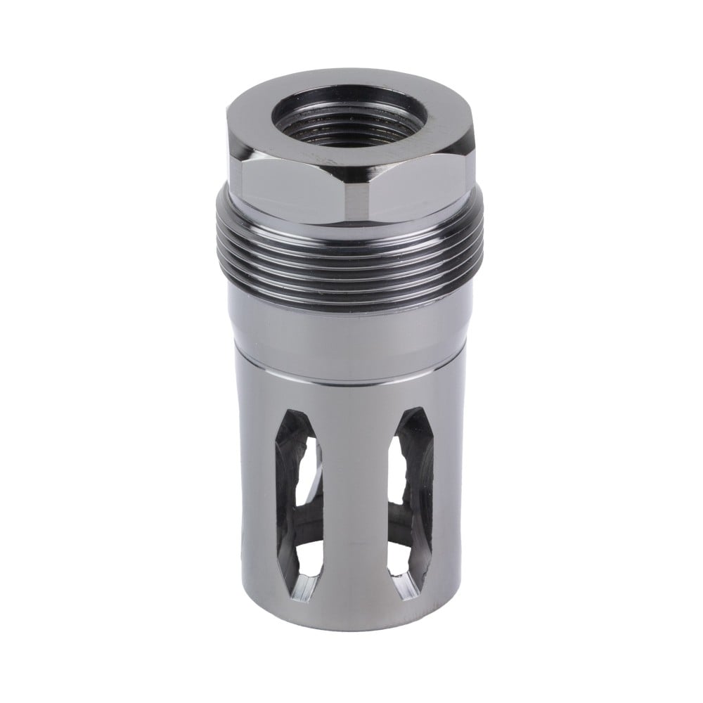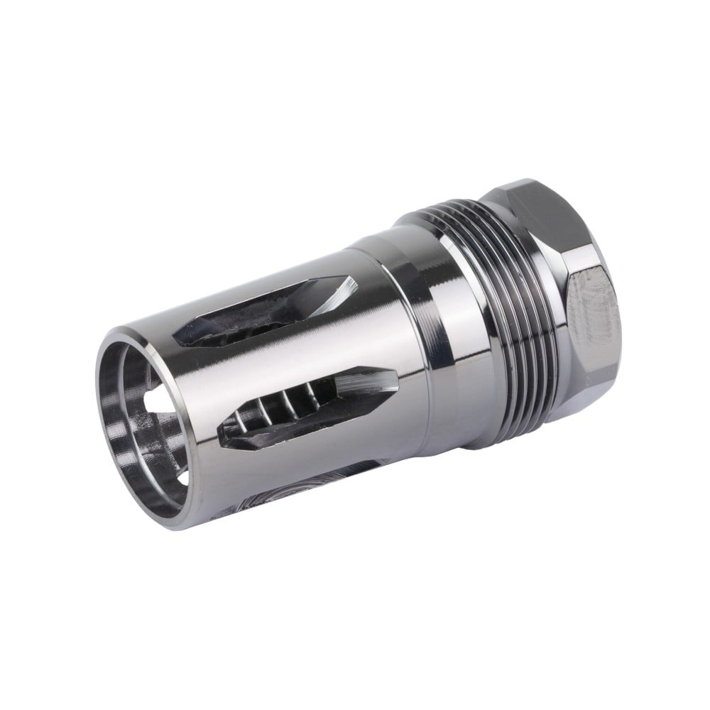 The Rearden R2S Flash Hider (Gunmetal) is a closed-tine flash hider that also functions as a suppressor mount. It’s designed with 360 degree ports to help reduce flash signature. It’s compatible with Rearden Atlas, Atlas XL, Atlas Helios QD and Plan B suppressor mounts.